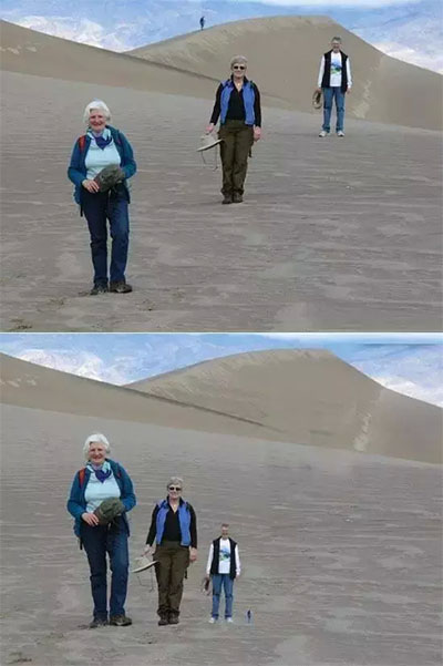 對(duì)比上下兩張圖片中的同一個(gè)人,你肯定不相信他們?cè)谏舷聢D片中的大小會(huì)是相同的,不信就用尺子量一量。沒錯(cuò)!你的眼睛又一次欺騙了你自己!