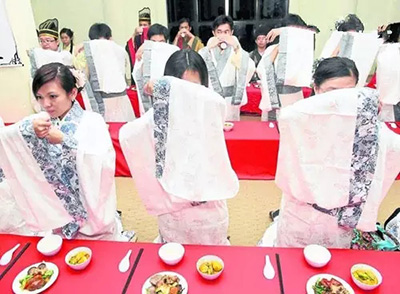 酒未喝完不上飯,一般情況下,在山西,主人敬的第一輪酒,客人不喝是不行的,否則被認(rèn)為看不起主人,客人無論酒量大小,要接酒痛快。山西人待客十分講究禮節(jié),主人要顯示熱情與隆重,故以滿為敬,客人要以手護盅杯表示致謝,主人勸酒,客人要端起酒杯來輕抿一口以示禮貌。