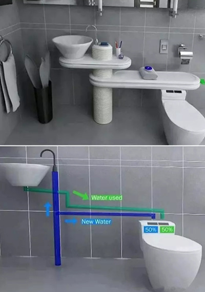 平常在衛(wèi)生間洗手盆用過的水還能直接沖馬桶,這樣真的節(jié)省很多水呢!