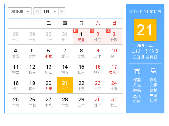 今天是2016年1月21日,星期四。