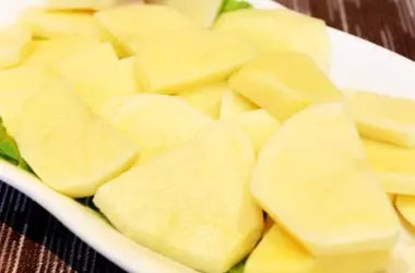 去皮,切塊后,放入佐料翻炒,最后加水文火慢煮,5分鐘左右起鍋即可。