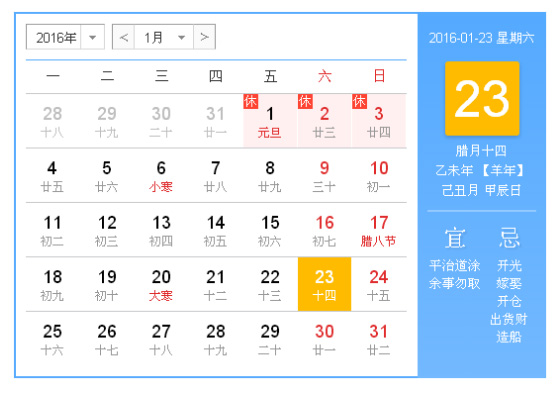 今天是2016年1月23日,星期六。