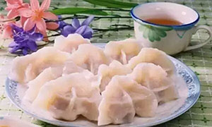 遼寧人特別喜歡做燙面水餃,燙面水餃對和面有極高的要求,面粉一分為二,一部分面粉慢慢加熱水,用筷子不斷攪拌成雪花狀,另一半面粉加入涼水,同樣的做法。之后將兩部分面粉分別揉成團,再合二為一揉成大面團餳30分鐘。燙面餃子一般蒸著吃,口感更好,非常勁道。