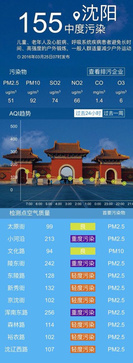 接下來共同關(guān)注沈陽未來幾天的具體天氣情況:今天白天天氣晴朗,最高氣溫將提升到11℃左右,北風(fēng)3-4級,空氣質(zhì)量中度污染;今天夜間最低氣溫-5℃左右。