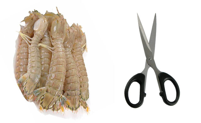 首先將皮皮蝦肉不多的頭分離掉,一手捏住身子,一手將皮皮蝦的頭扭掉就好了。然后需要用到剪刀,將皮皮蝦的尾部一剪子剪掉,然后不要扔,因為里面還有很多肉。用剪子沿著皮皮蝦身子的兩邊將蝦殼剪掉,這個要注意不要剪的過多而浪費蝦肉,最后,把背部的殼和腹部的殼分離開就可以吃了,這個方法安全指數(shù)較高。