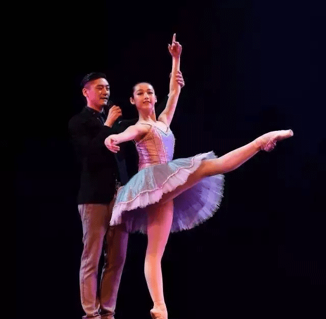 開演前的講解,由遼寧芭蕾舞團(tuán)首席主演、副團(tuán)長呂萌擔(dān)綱主持,做示范的小演員是李琳。