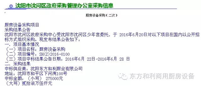 此次中標(biāo)工程主要為沈河區(qū)少年宮提供廚房設(shè)備,中標(biāo)金額27.5萬元,此前,東方和利廚業(yè)也在合作的客戶中贏得了良好口碑,樹立了良好信譽(yù)。為進(jìn)一步站穩(wěn)全國市場打好基礎(chǔ),沈陽東方和利廚業(yè)定將繼續(xù)打造優(yōu)質(zhì)工程。沈陽東方和利廚業(yè)中標(biāo),離不開公司銷售部和內(nèi)勤部的全力協(xié)作,感謝所有努力的同事們!沈陽東方和利的明天必定更加精彩!