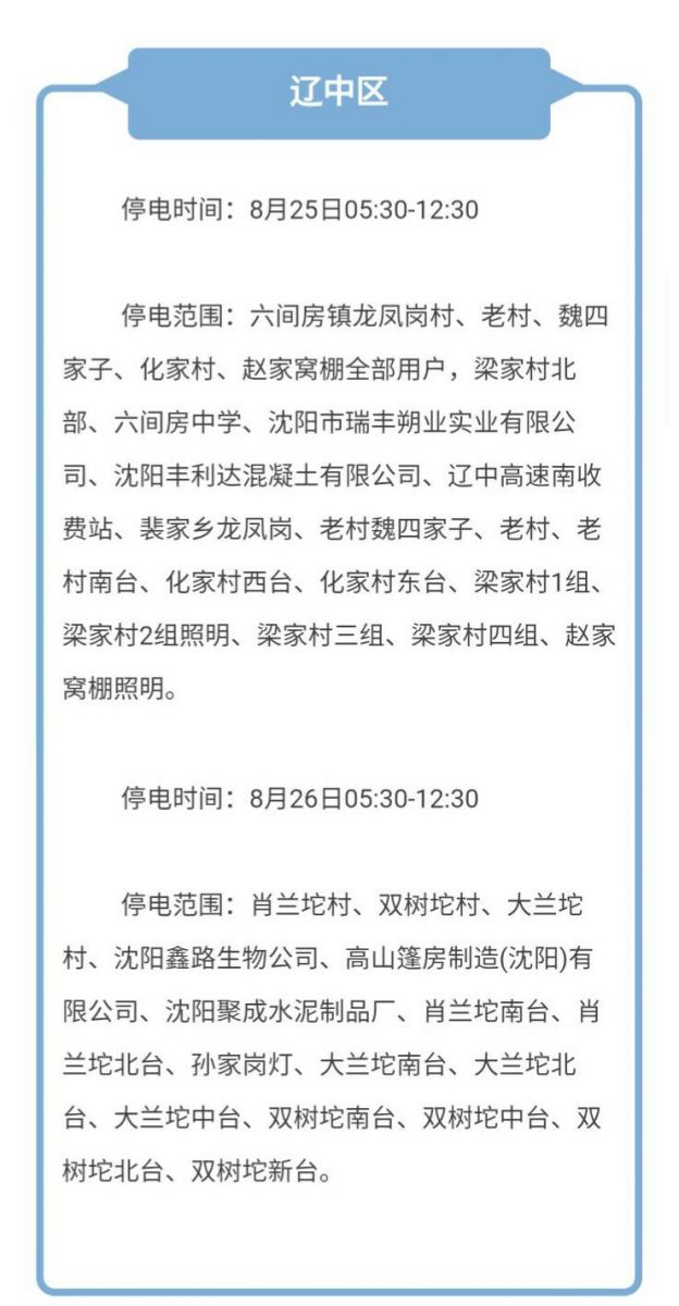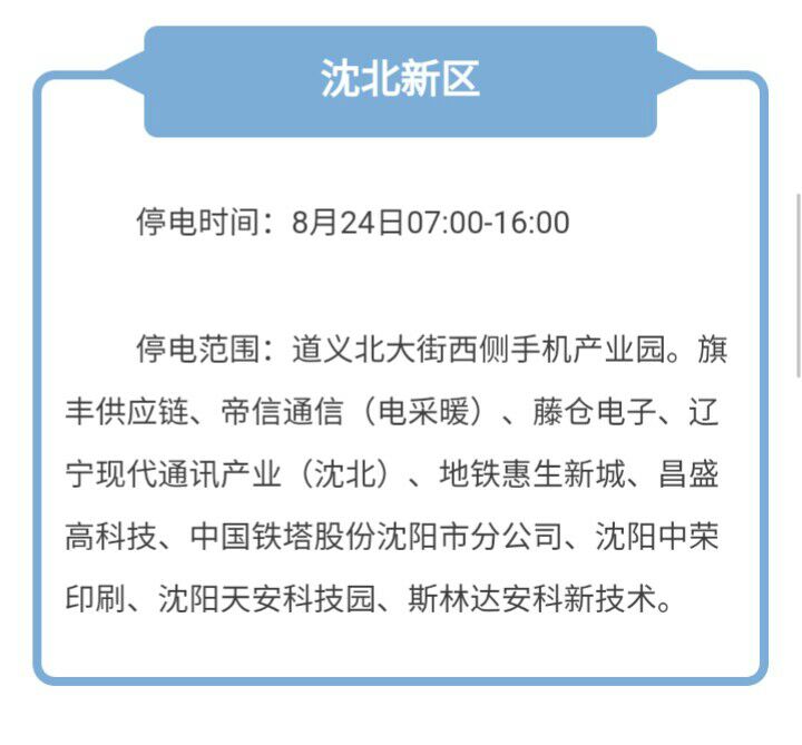 本周沈陽(yáng)有哪四區(qū)停電