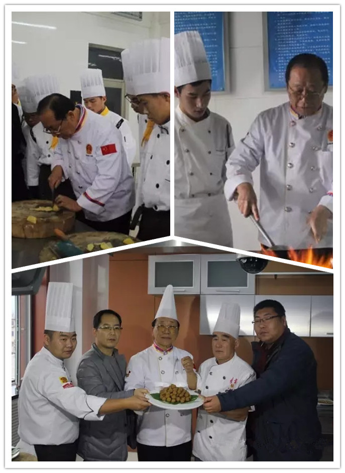 劉敬賢大師走進實訓課堂,親自指導學生刀工技法及烹調(diào)技藝,叮囑同學們學習廚藝要有耐心、恒心,掌握技巧,反復練習。劉敬賢大師親自為2015級敬賢廚藝西餐班演示扒素魚翅、干炸丸子、?大蝦、扒白菜、蔥燒遼參五道經(jīng)典名菜。同學們觀摩了大師的經(jīng)典名菜,品嘗了大師親手制作的菜品,贊嘆不已。同學們得到劉敬賢大師的技藝真?zhèn)鳎斋@很大,紛紛表示希望學校能夠為他們創(chuàng)造更多的名師進校活動。