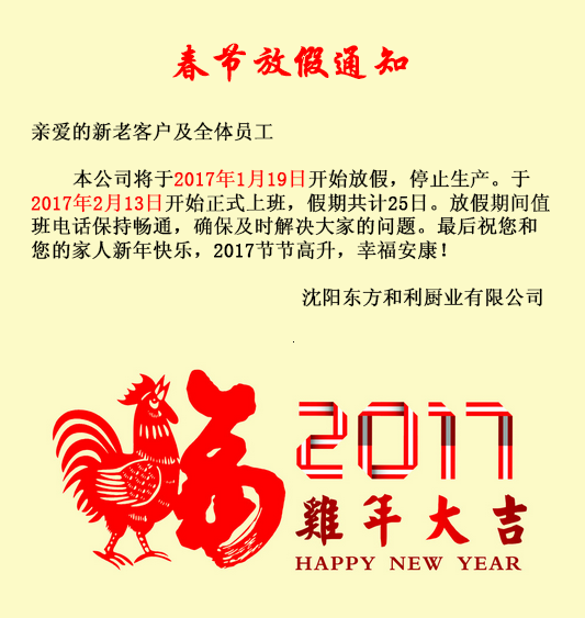 放假通知:沈陽(yáng)東方和利廚業(yè)今日正式放假
