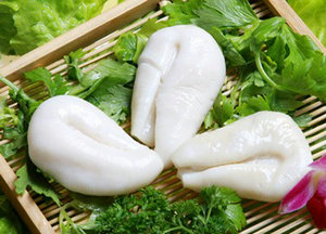海腸去腸洗凈,切長(zhǎng)段。鍋上火,放入涼水和海腸,使其慢慢受熱,待海腸鼓起來(lái)時(shí)迅速撈出,再進(jìn)行烹制。這樣做出來(lái)的海腸格外脆嫩,而且不易出湯。