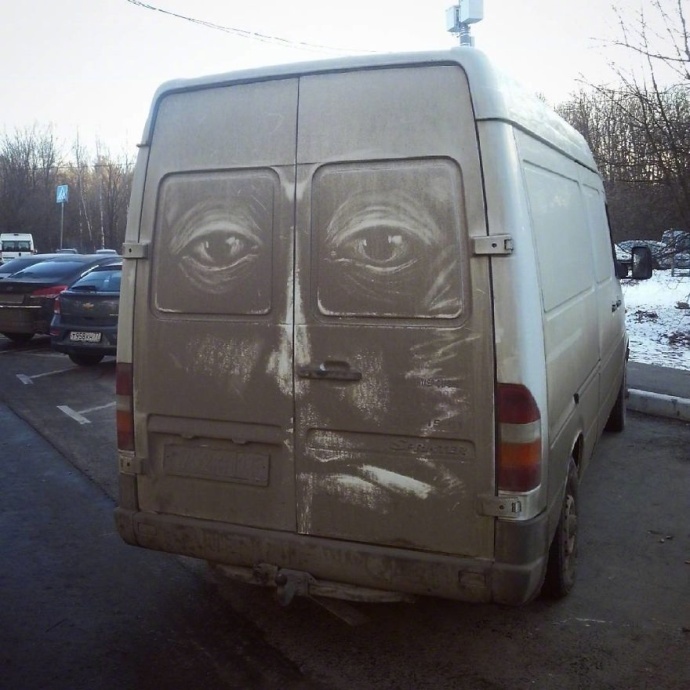 當有的人看見一輛滿是灰塵的汽車時,其往往感到嗤之以鼻,而有的人則會十分開心。如果你住在俄羅斯,你那滿是灰塵的汽車有可能就會成為插畫家的目標,不管你愿意與否,他都會在你的車上展開自己的創(chuàng)作。
