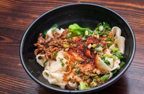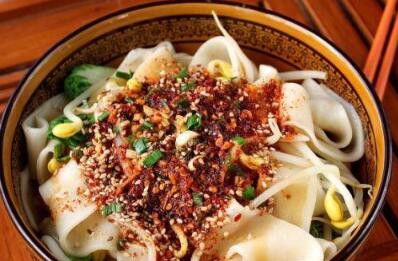 油潑面是陜西傳統(tǒng)的特色面食之一,起源于周代,并以咸陽油潑面最為著名,有鮮香味、酸辣味、香辣味。油潑面爽滑可口,余味十足,受到了大家的歡迎。