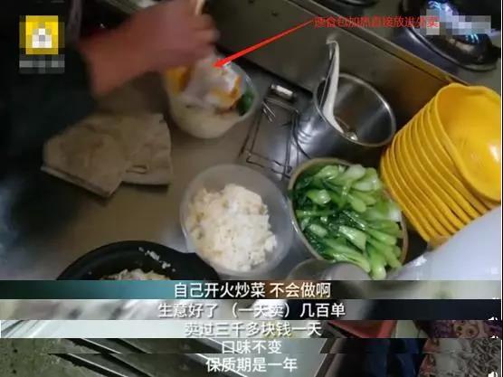 有人在外賣平臺上訂餐后,外賣餐館將速食料理包放入米飯中,在微波爐中加熱后即完成全部制作過程。外賣老板還承認,自己不會做飯!就依靠這些速食料理包,每天可接幾百單,最高收入達3000元一天。