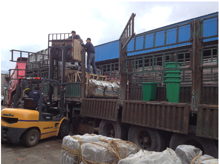 5月4日休假歸來,我公司又迎來北鎮(zhèn)(北寧)市一廚房工程的開工,休假后精神飽滿的車間師傅們正忙活著為工程所需廚房設(shè)備打包裝車。因該廚房工程所需要的廚具設(shè)備較多,大家都開動腦筋,想辦法使設(shè)備在裝車后能充分利用空間,并且穩(wěn)固。師傅們熟練的操縱著叉車,又快又穩(wěn)的將包裝箱按放在貨車上,而貨車上負(fù)責(zé)擺放的師傅也齊心合力的將其小心翼翼的碼放,并做好捆綁加固工作。