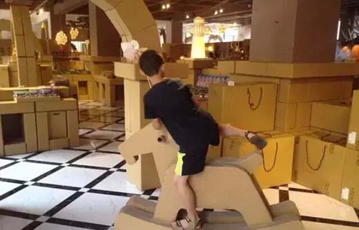 在"紙箱王創(chuàng)意園區(qū)",結(jié)合創(chuàng)意人、設(shè)計(jì)人、印刷人所組成的紙品王國,成了一個(gè)兼具觀賞、娛樂、餐飲等功能的綜合性休閑中心,讓人嘆為觀止。裝飾陳設(shè)都是"紙器",如下圖。