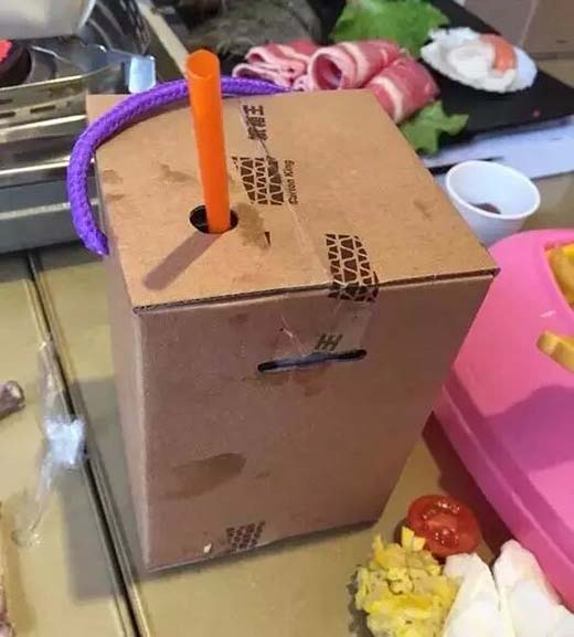 走進(jìn)"紙鍋餐廳", 你會發(fā)現(xiàn)真的是紙和瓦斯?fàn)t在親密接觸!據(jù)說,"紙鍋"耐溫250度,可反復(fù)用三次,無毒無害。
