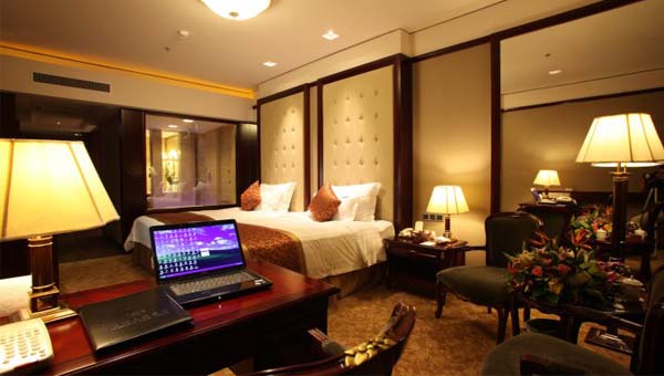 賓館由A、B座兩棟樓組成,擁有各類客房179間。設(shè)有無煙樓層和行政樓層。客房寬敞舒適,典雅時尚。 餐廳擁有風(fēng)格各異、規(guī)格不等的中餐廳、咖啡廳、日式餐廳及各類宴會廳19間,可提供遼菜、粵菜、川菜、日式料理、西餐以及特色滿族美食等。