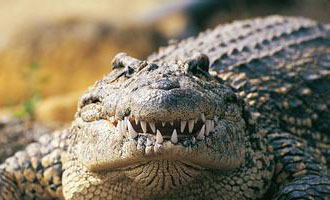 有近視旅客,在河邊漫步時,看見河中央豎立著一塊牌子,可惜中間的字看不清。好奇的他,只好脫下鞋子,涉水到河中一探究竟,只見牌子上寫著:請勿喂食鱷魚,謝謝。