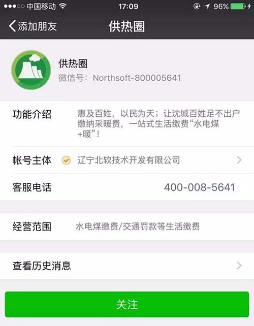 3、關(guān)注該平臺(tái)已開通的供熱企業(yè)微信二維碼