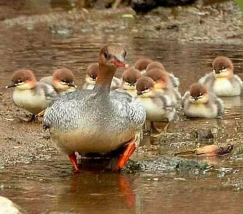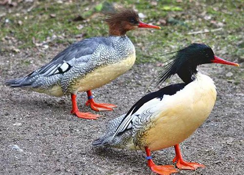 這種兩脅羽毛上具有黑色鱗紋的鴨科鳥類早先的名字叫鱗脅秋沙鴨。后來,鳥類學(xué)家發(fā)現(xiàn)它們的原產(chǎn)地是中國吉林省長白山地區(qū),所以才改稱它為中華秋沙鴨。中華秋沙鴨距今已生存了上千萬年,但目前數(shù)量大約僅存2200。他們習(xí)慣利用樹齡較大樹木的天然樹洞筑巢,但此類樹木的數(shù)量正在逐年減少,致使該物種需要額外保護(hù)。