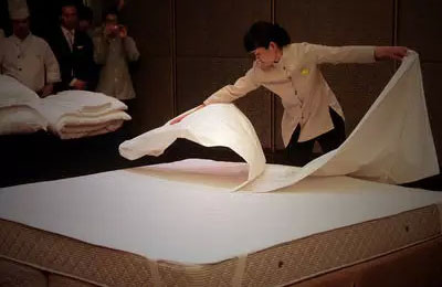 【舉例】剛洗好的床單太苦楚,來,跟我一起扽平展。