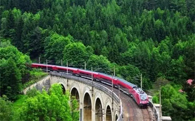 行程一小時(shí)的塞默林鐵路線從格洛格尼茨出發(fā),途徑阿爾卑斯山的塞默林隘口,最終到達(dá)米爾茨楚施拉格。這條鐵路線于1854年完工,沿途共穿過(guò)16座高架橋和14條隧道。在TNT炸藥和隧道鉆孔機(jī)問(wèn)世之前,它們可全都是手工開(kāi)鑿的,真可稱得上是鐵路建造初期的土木工程杰作。