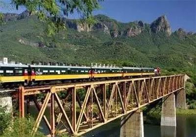 墨西哥最現(xiàn)代化、最舒適的旅客列車就穿行在這條又稱銅峽谷的鐵路線上。這條行程13小時(shí)的鐵路線將墨西哥北部的干旱內(nèi)陸和太平洋地區(qū)連接起來(lái)。穿越陡峭的峽谷壁、瀑布和沙漠平原,還可以見(jiàn)到塞拉-塔拉胡馬拉的絕美景色。