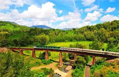 這趟縱貫澳洲大陸南北,行程兩天的列車穿越阿得萊德附近的灌木叢和牧場(chǎng),克萊爾山谷的沙漠灌木和桉樹(shù)叢,鐵銹色的紅色中部地區(qū),澳大利亞北端植物繁茂的熱帶地區(qū),最后到達(dá)生活閑適的澳大利亞北領(lǐng)地首府達(dá)爾文。