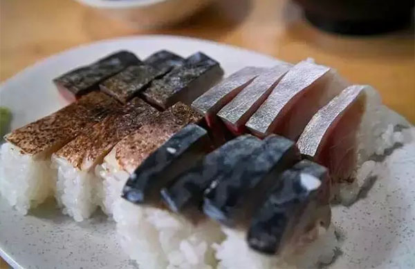 鯖魚(yú)和鮭魚(yú)制成的柿葉壽司