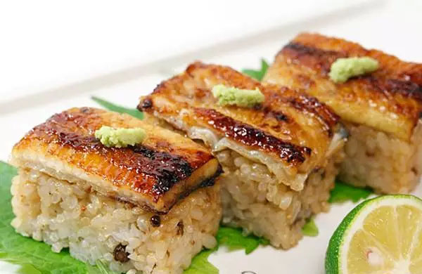 握壽司,用手把米飯握成小塊,涂上山葵,最后鋪上配料。視配料種類之不同,有時(shí)會(huì)用一塊海苔把兩者縛在一起。在日本,若不加說(shuō)明的話"壽司"一詞多是指握壽司,這也是我們最熟悉的壽司類型。握壽司對(duì)食材的要求很高,握壽司的食材極其豐富,是常見(jiàn)的回轉(zhuǎn)壽司、便當(dāng)壽司,也可以是高級(jí)的貴壽司,當(dāng)然口感和價(jià)格也是天壤之別。
