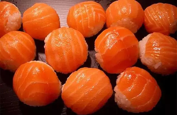 手掬壽司,把米飯和魚(yú)生團(tuán)成球形捏制而成。