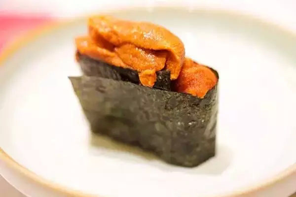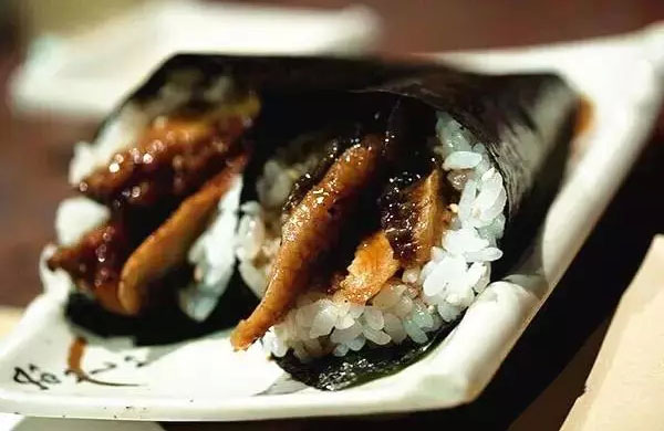 軍艦卷,一般認(rèn)為軍艦卷的歷史并不悠久,可能產(chǎn)生于二戰(zhàn)前后,其形態(tài)像是海軍軍艦。軍艦卷用烘焙干的紫菜片圍繞調(diào)味飯團(tuán)一圈,在軍艦卷的凹槽中可以加入一些質(zhì)地柔軟,松散不易成型的食材,比如海膽、鮭魚(yú)籽和貝柱等。這種壽司的發(fā)明極大擴(kuò)展了壽司食材的范圍,使得一些不易成型的食材也可以制作成壽司。